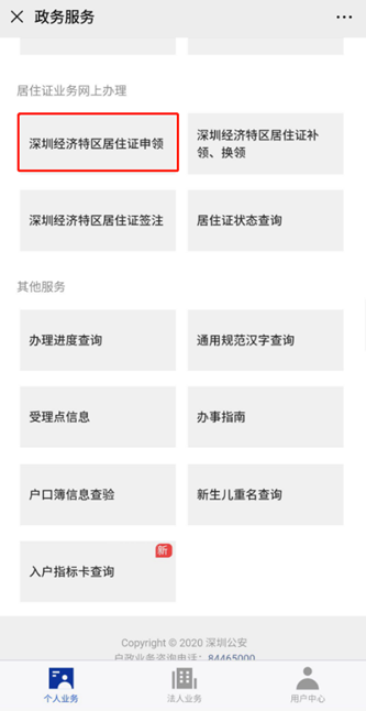 2.1进入“深圳公安”微信公众号,点击【深圳居住证申领】。